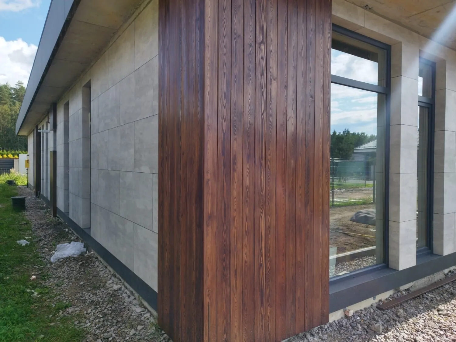 Широкоформатный керамогранит 3000х1000 мм, гибкая керамика, планкен из лиственницы