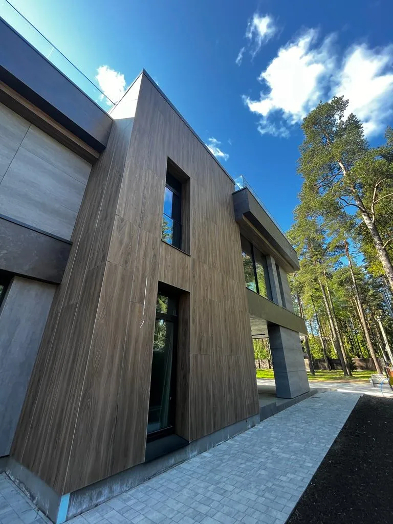 Заказчик стремился к минималистичному дизайну с акцентом на геометрию и монолитность. Кассетный способ монтажа был выбран с учетом проведения работ в зимний период,. Данный способ дороже, но при этом не зависит от погодных условий.